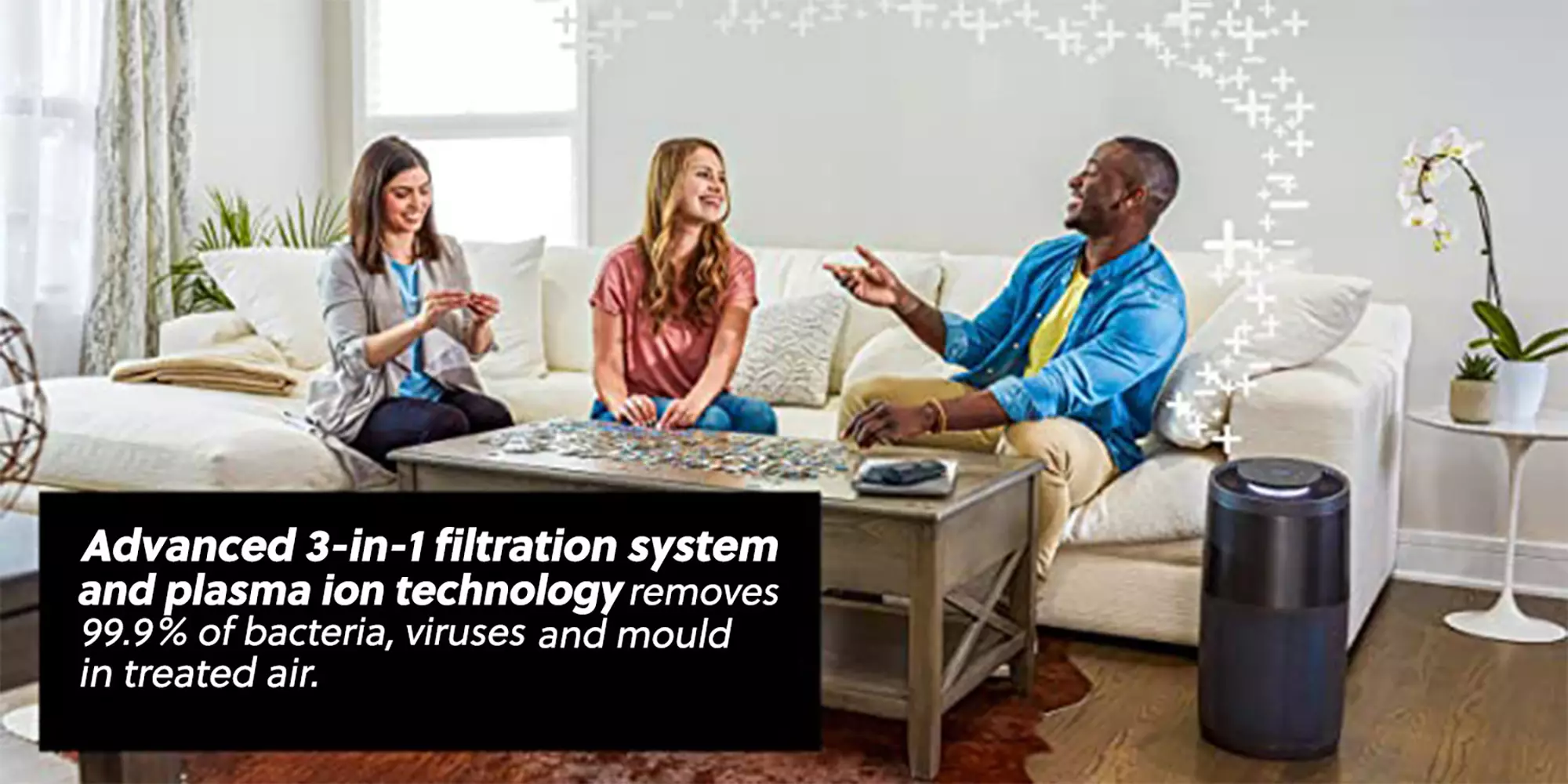 - Uses an advanced filtration system and plasma ion technology to remove 99.9% of the virus that causes COVID-19 from treated air (1)