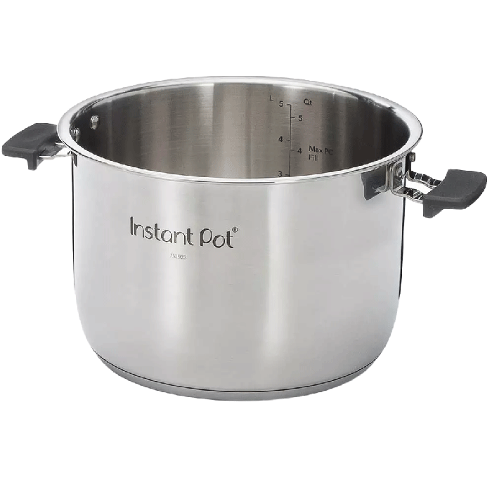 Stainless steel inner pot for 5.7L (6 Qt) with handles, without non-stick coating.