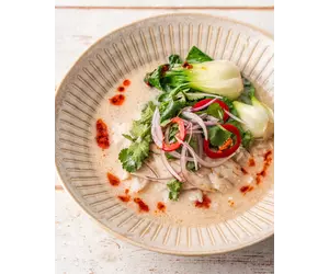 Deze in kokos gestoofde vis is licht, aromatisch en vol van smaak. Geurige kokoscrème wordt doordrenkt met citroengras, gember, knoflook en rode...