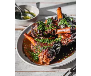 Deze langzaam gegaarde lamsboutjes zijn rijk van smaak, boterzacht en vallen zo van het bot. Ze worden langzaam gestoofd tot perfectie en afgewerkt...
