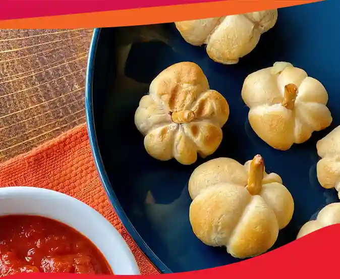 Feestelijke en makkelijke airfryer mozzarella pompoenbroodjes voor Halloween of herfstetentjes