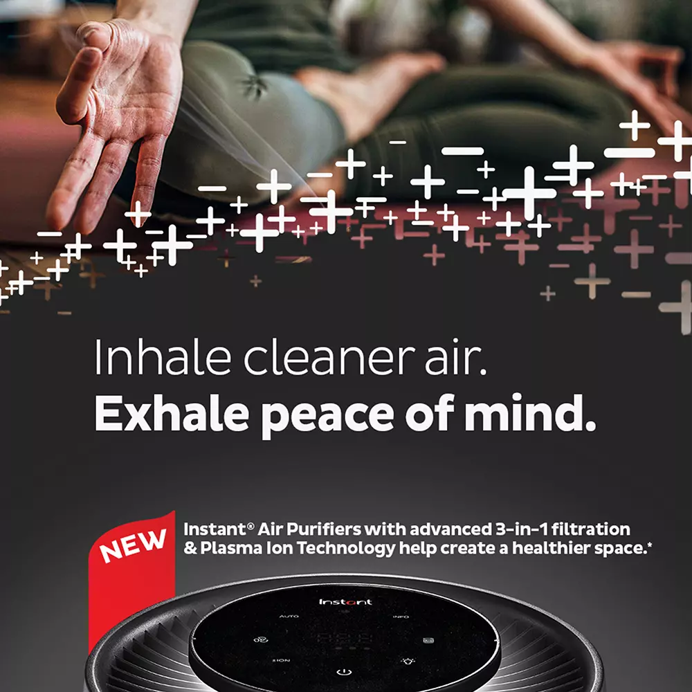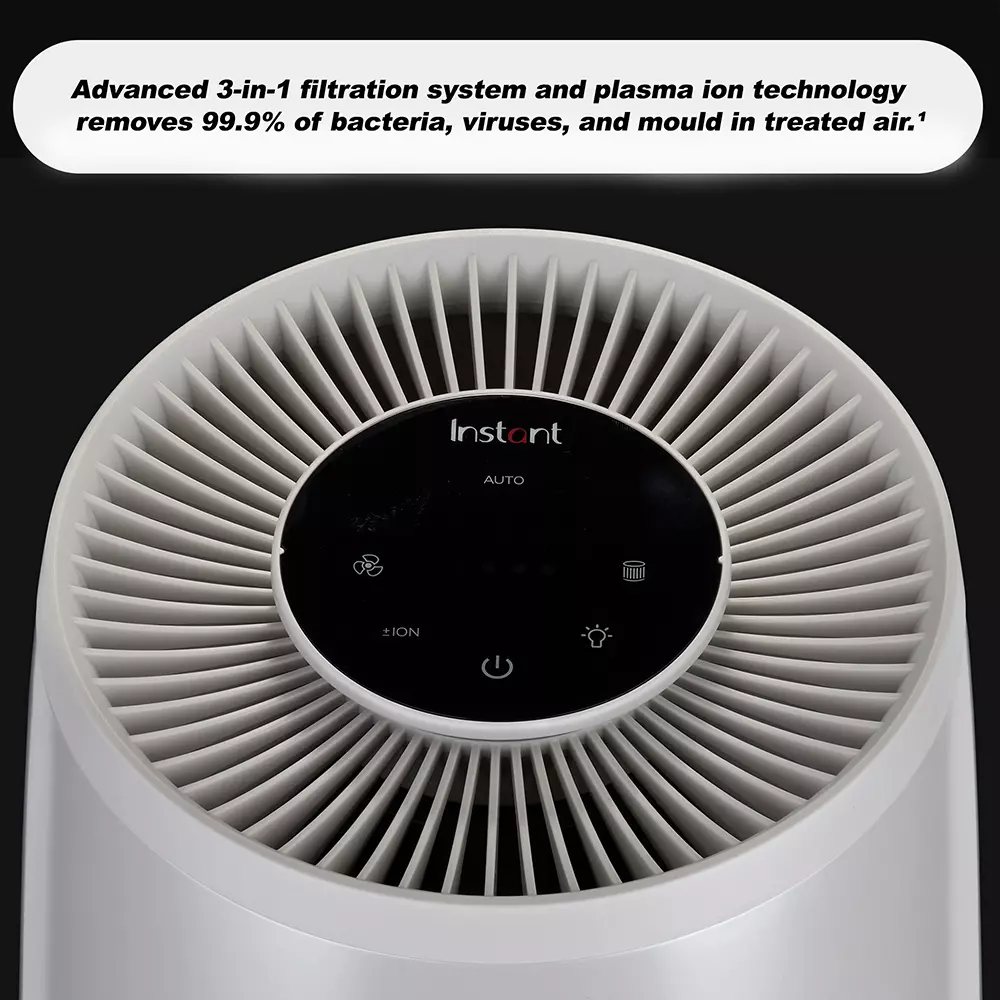 Instant™ luchtzuiveraar maakt gebruik van geavanceerde technologie om schonere lucht te leveren, wat u gemoedsrust geeft. Hij combineert een geavanceerd filtratiesysteem met plasma-iontechnologie om 99,9% van het virus dat COVID-19 veroorzaakt uit behandelde lucht te verwijderen.1 Bovendien verwijdert hij 99,9% van andere bacteriën, virussen en schimmels in behandelde lucht.2 En de ingebouwde sensoren bewaken de luchtkwaliteit en passen de ventilatorsnelheid automatisch aan, om 24 uur per dag, 7 dagen per week te werken.3 Met Instant Air Purifier ademt u schonere lucht in, en ademt u gemoedsrust uit.