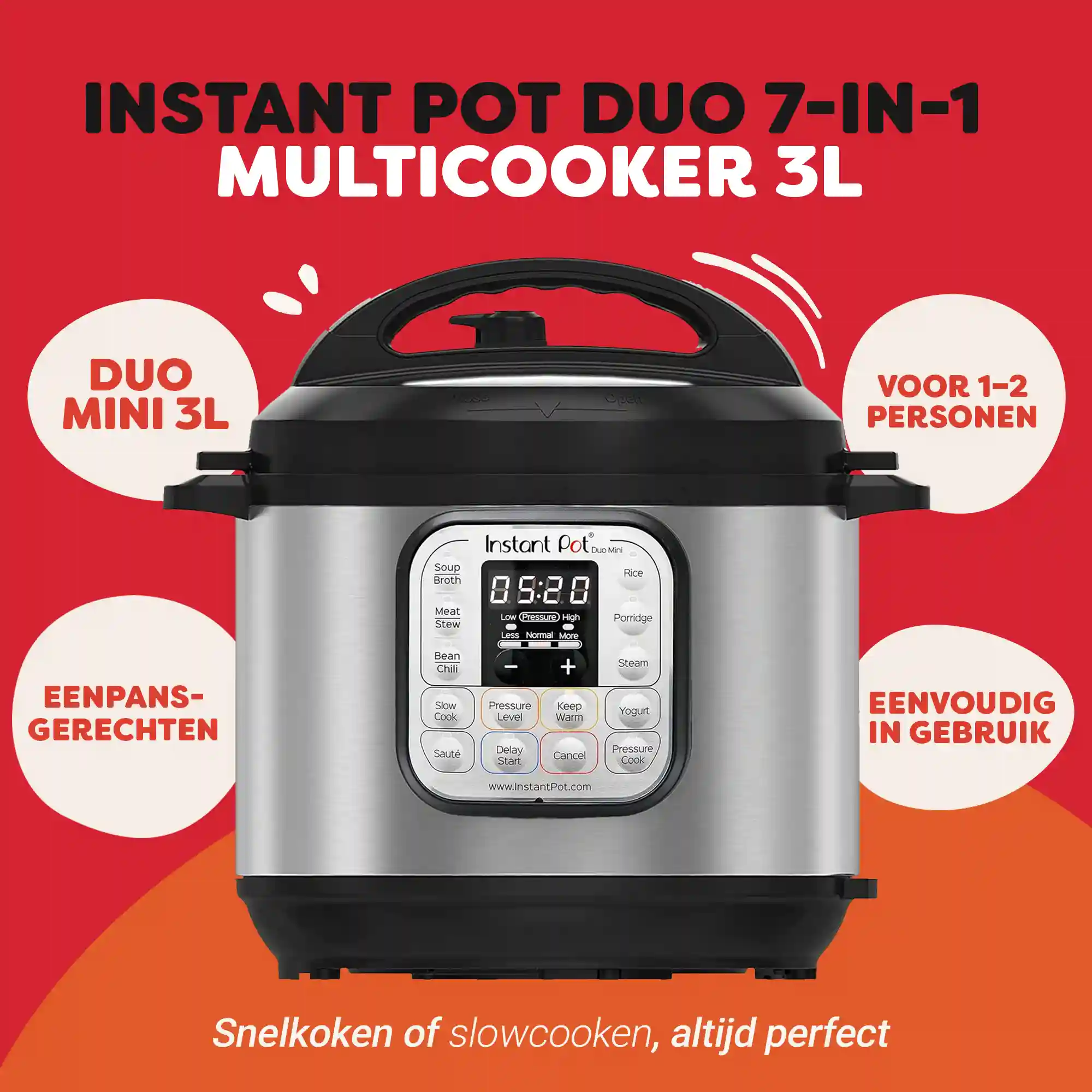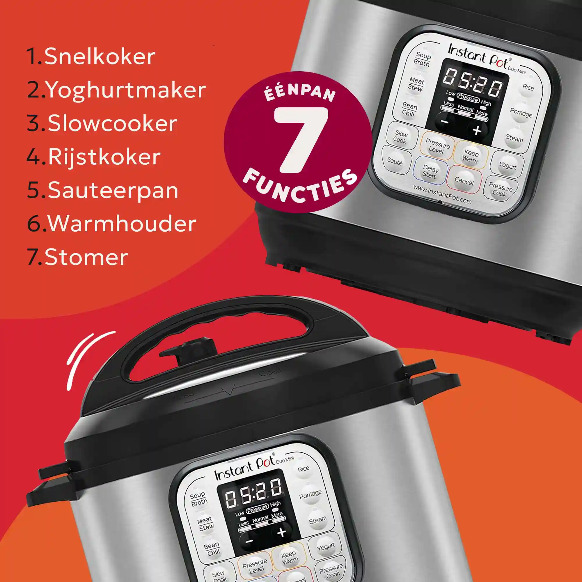 De Duo doet alles wat je kunt doen met 7 andere apparaten: snelkookpan, sauteerpan, stomer, slowcooker, rijstkoker, voedselwarmer en yoghurtmaker.