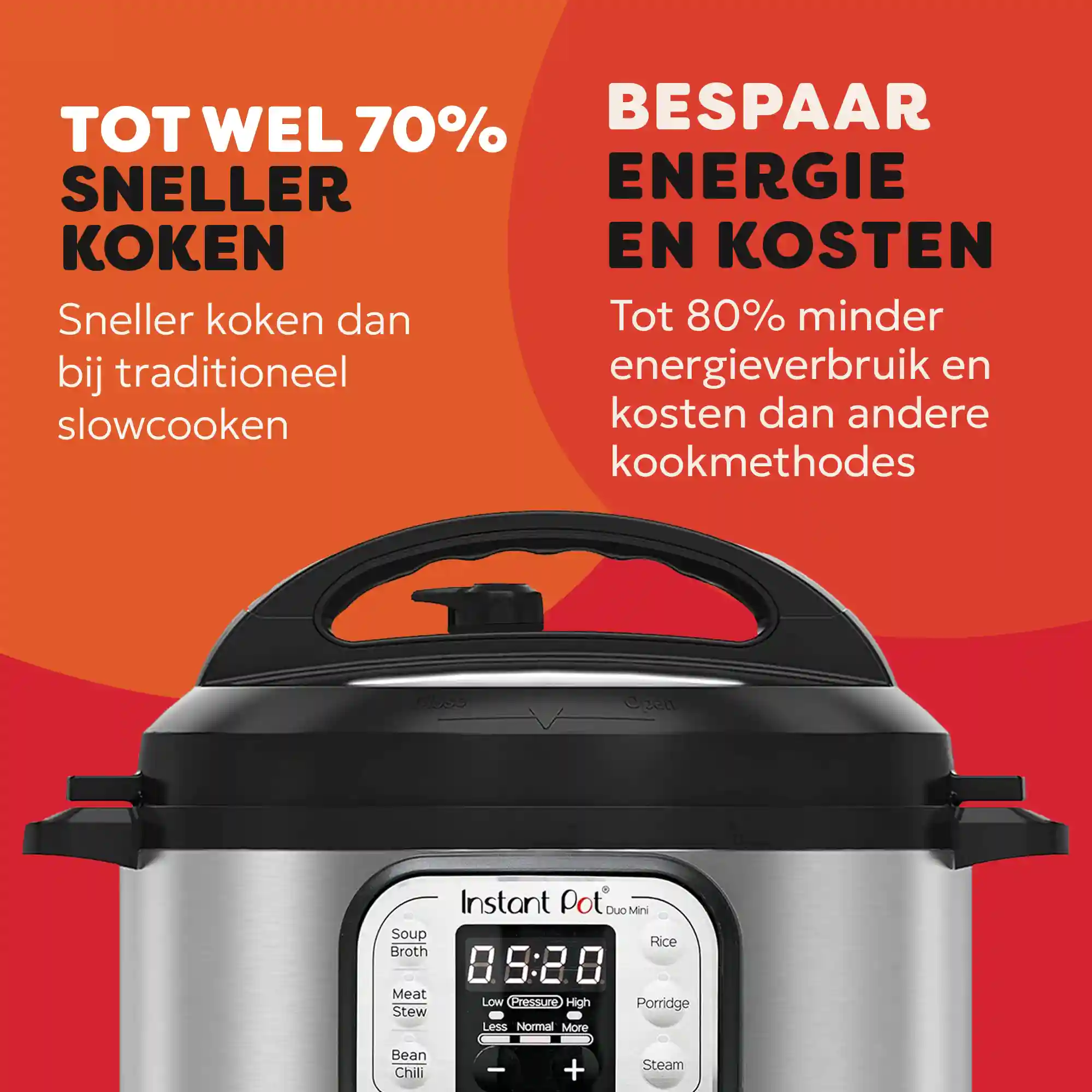 De #1 bestseller Instant Pot Duo multikoker vervangt niet alleen 7 apparaten, maar versnelt ook het koken met 2-6 keer en bespaart tot 70% van de energie die wordt gebruikt bij traditionele kookmethodes.