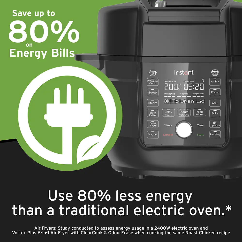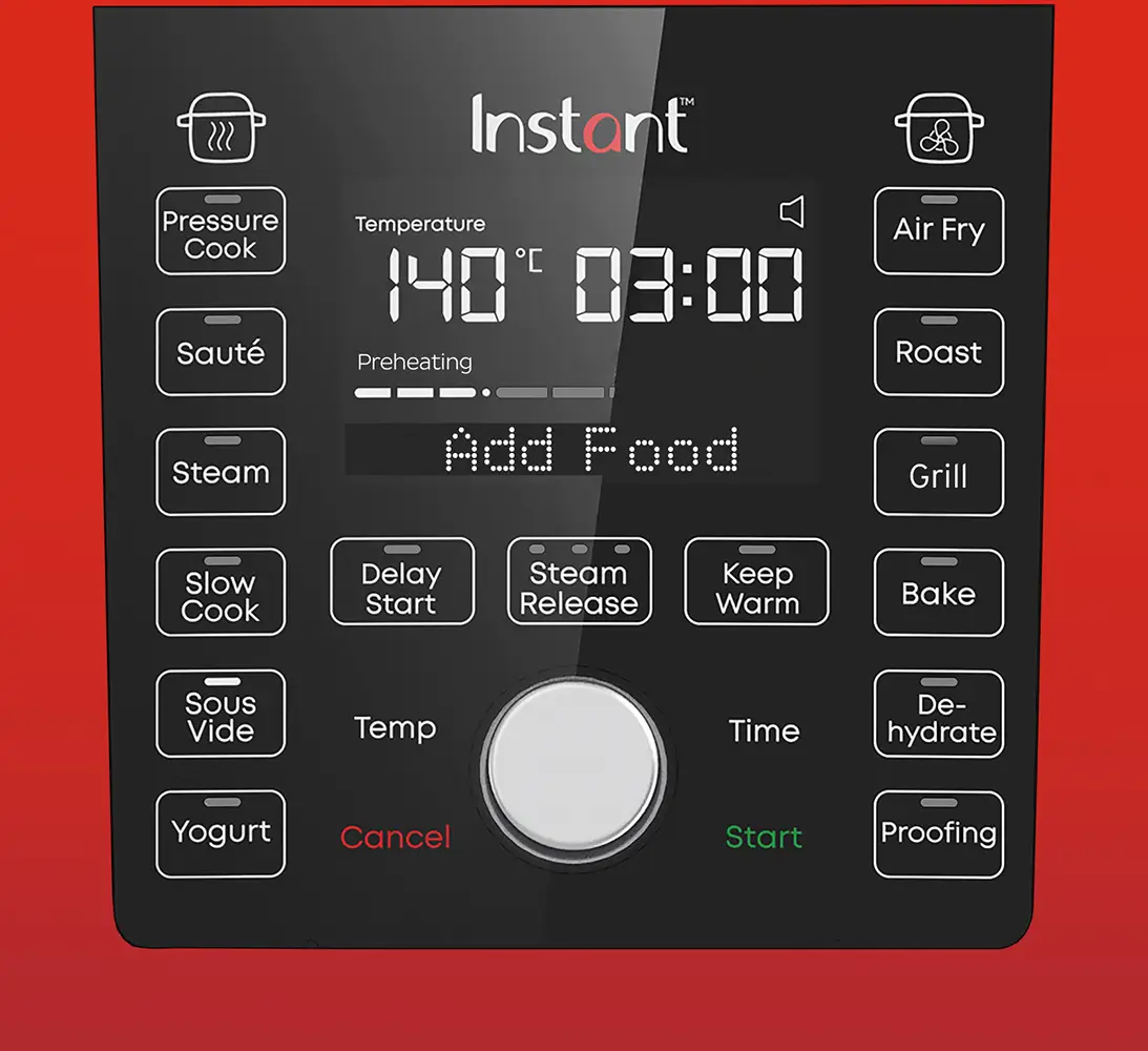 - 13-IN-1: snelkookpan, airfryer, slowcooker, steamer, sauteerpan, voedselverwarmer, braadpan, mini-oven, grill, dehydrator, yoghurtmaker, sous-vide en broodrijs