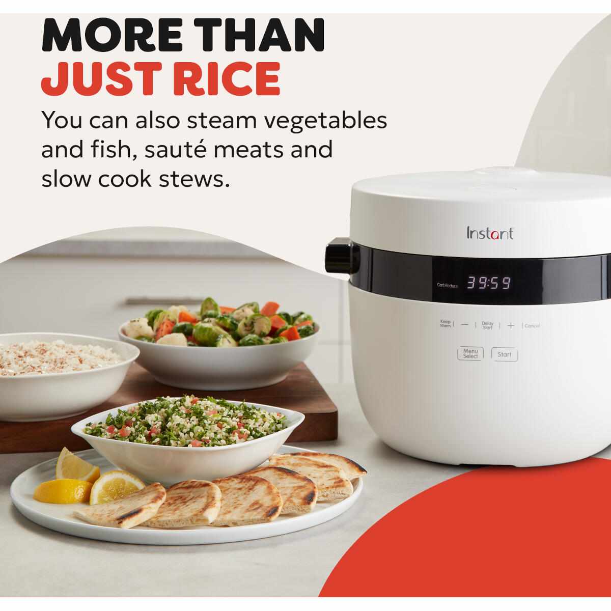 - Gezonder eten is nu nog makkelijker: de koolhydraatverminderende modus verlaagt de inname van koolhydraten en suikers met wel 40%, terwijl u nog steeds geniet van voedzame rijstgerechten.