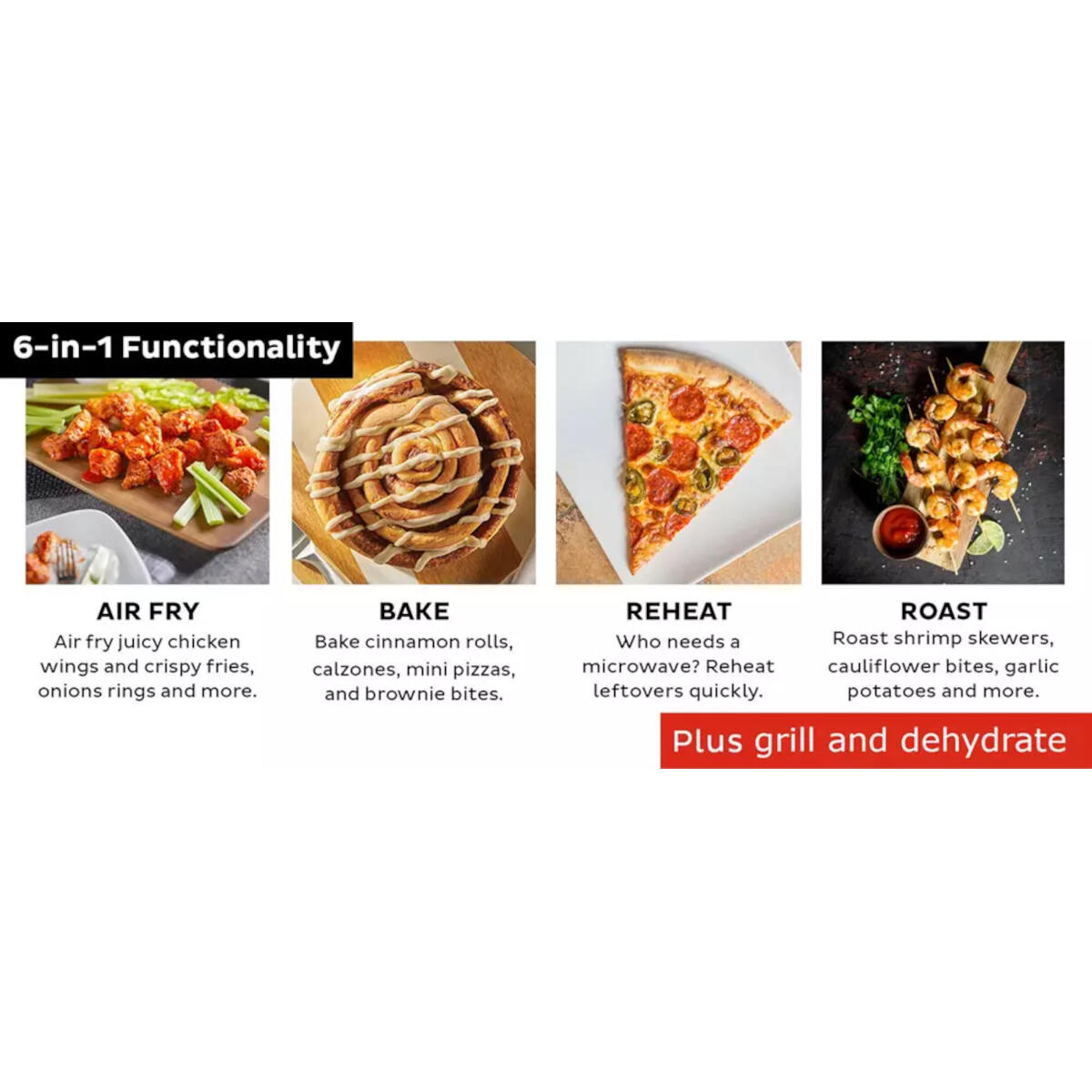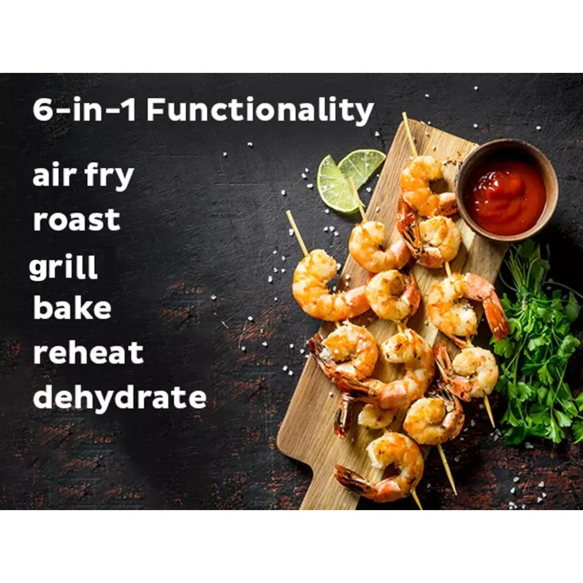 - 6-in-1 Veelzijdigheid: Airfry, grill, bak, rooster, droog en verwarm alles in één apparaat.